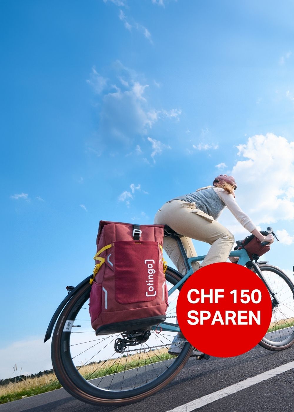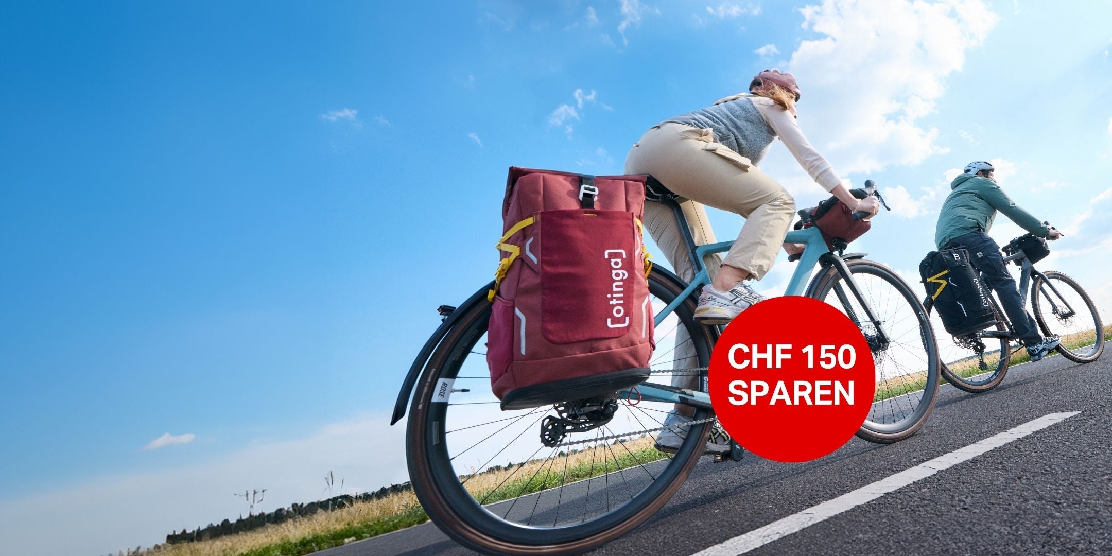 Leander Mellies und Karl Fischer (Aachen, Berlin) die Gründe von otinga / 2bag mit dem Flip / 2bag Rucksack und Fahrradtaschen Kombination auf dem Boden sitzend vor einem Fahrrad